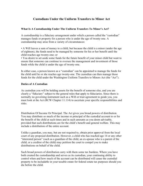 Custodians Under The Uniform Transfers To Minor Act
