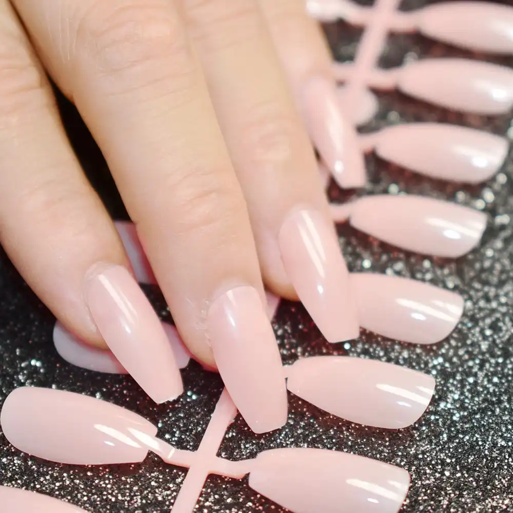 24pcs Nude Pink Pure Color Coffin Nails False Nail Full Cover Flat